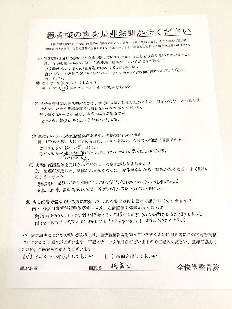 全快堂の妊活整体を実際に受けた方の声をご紹介します!